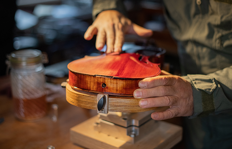 The main instruments he has played are baglama, mey, oud, kanun, stringed drum and violin. Because of his early fascination and ongoing interest in the violin, he eventually developed the idea for making his own instrument after conducting extensive research over the years. Based on this idea and thought, the violin-maker had the opportunity to examine the instruments of several well-known violin-makers in Turkey and in various cities of the world. He has conducted and is still conducting a lot of research by delving deep into the history of the violin making craft. Growing up with a father who was a forest engineer and spending much of his life surrounded by woods enabled him to speak the language of the trees.
